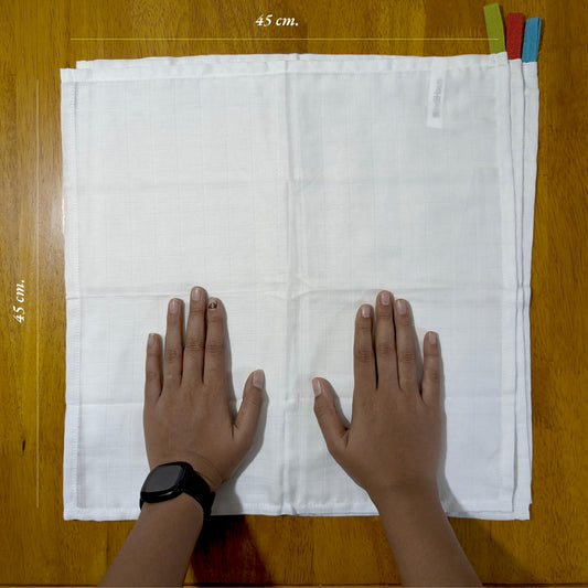 MUSLIN Hand & Face Towel, 1.5 x 1.5 Ft, White, 100% Cotton, (Pack of 3)