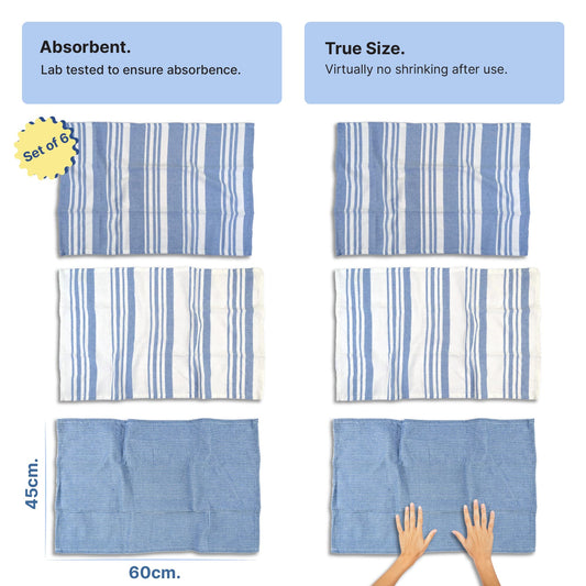 RIGHTSIZE Kitchen Towels, 2 x 1.5 Ft, Indihaus Blue. Pack of 6