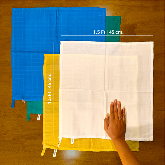 Muslin Face & Hand Towel, Green, Blue & Yellow, 100% Cotton, (Pack of 6)