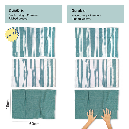 RIGHTSIZE Kitchen Towels, 2 x 1.5 Ft, Ocean Teal. Pack of 6