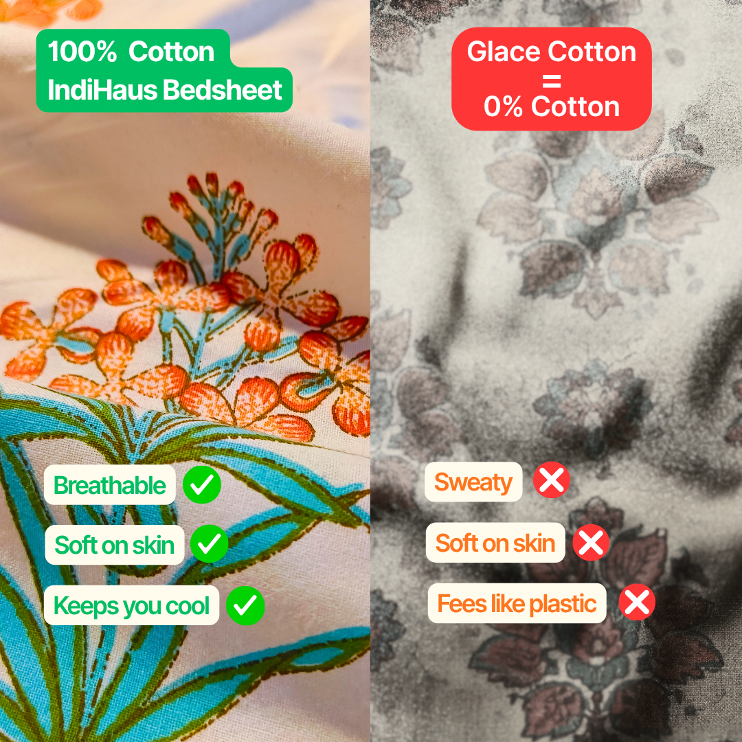 Vrishti, Cotton Bedsheet – Orange Floral – 100% Cotton King Size (100 x 104 inches, 1.3kg)