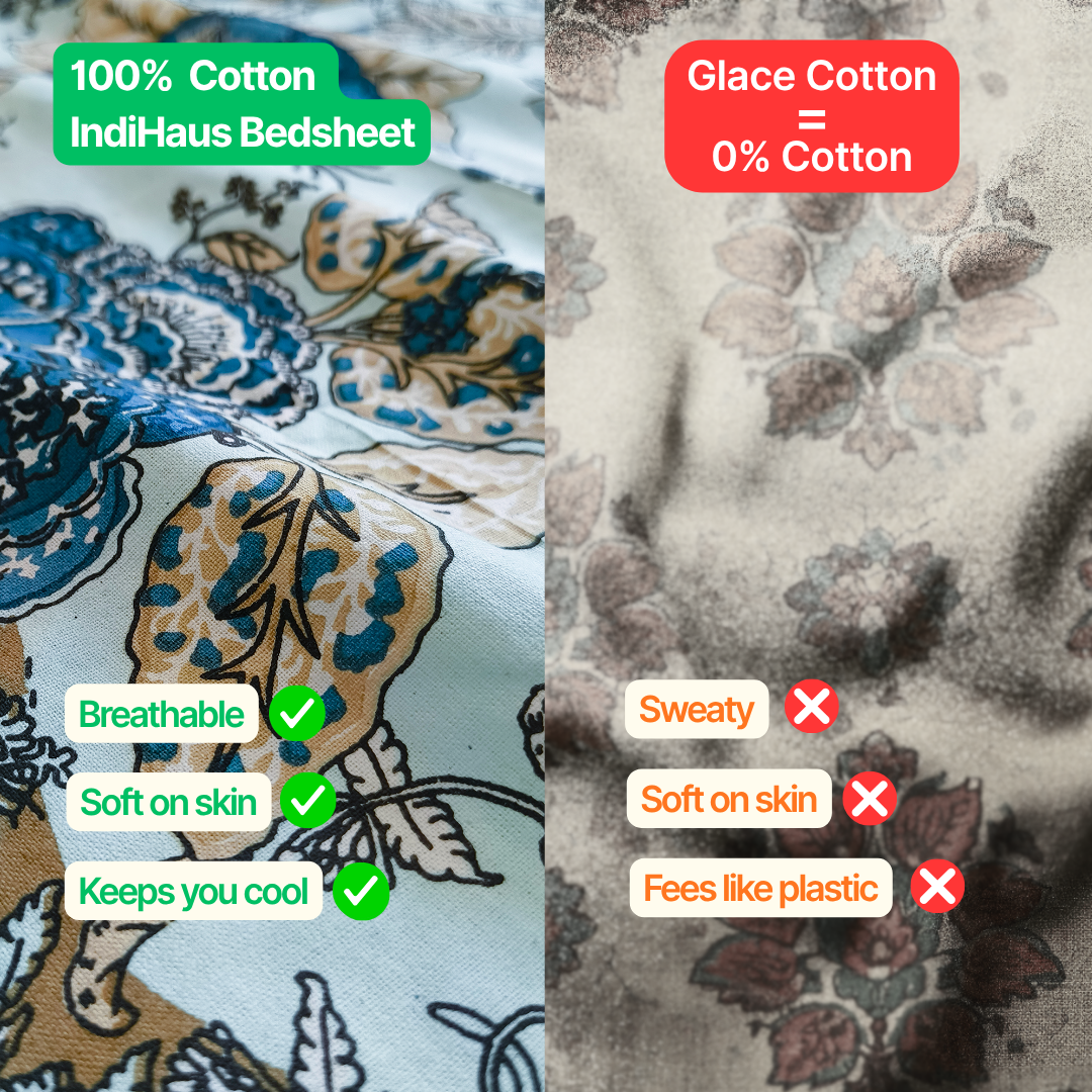 Lal Bagh, Cotton Bedsheet – Blue – 100% Cotton King Size (100 x 104 inches, 1.3kg)