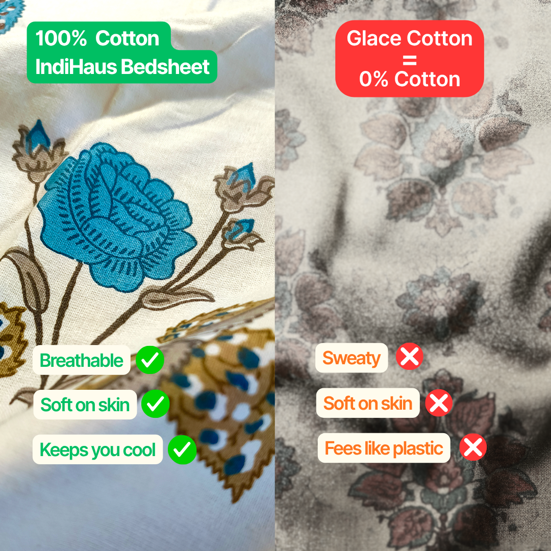 Koyna, Cotton Bedsheet – Blue Rose – 100% Cotton King Size (100 x 104 inches, 1.3kg)