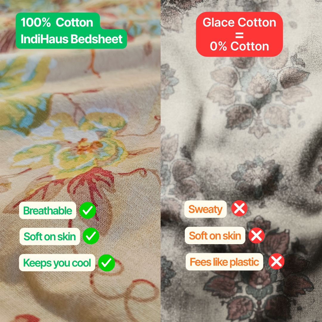 Neora, Cotton Bedsheet – Beige – 100% Cotton King Size (100 x 104 inches, 1.3kg)