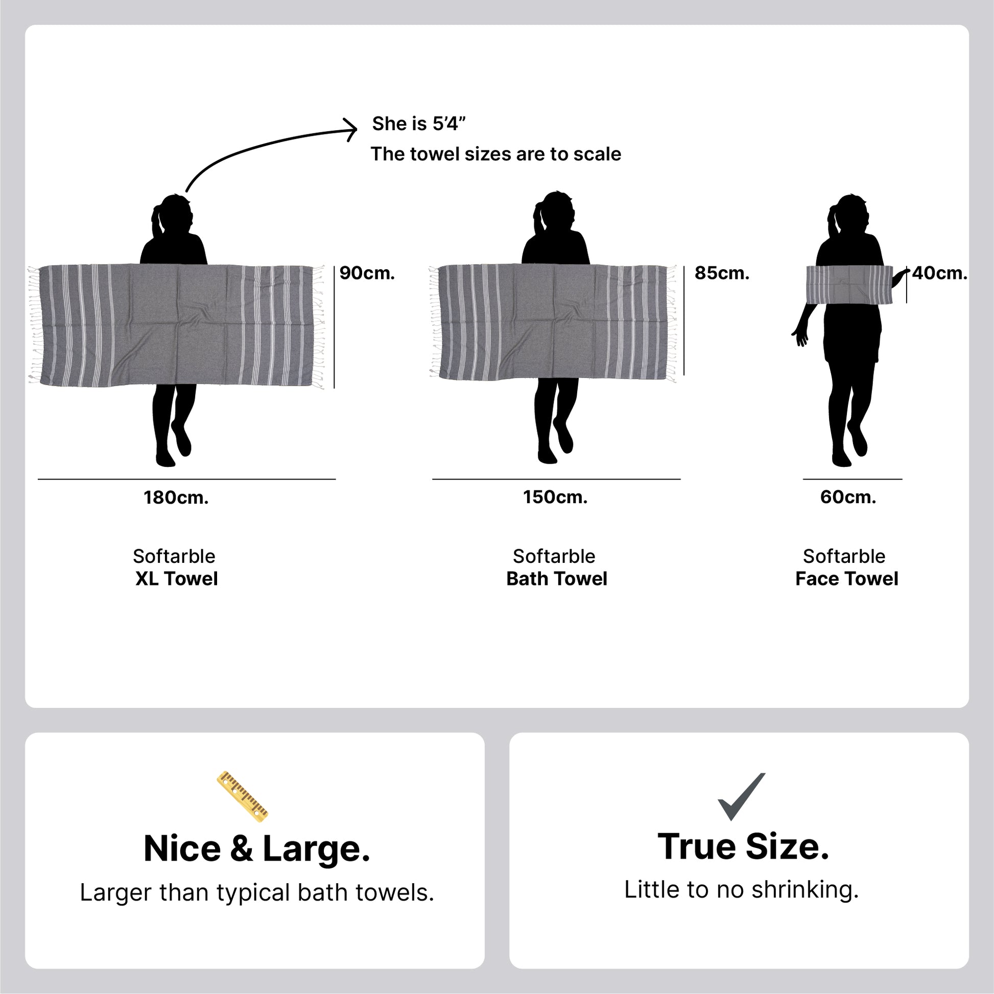 TRULY XL Bath & Hand Towel Set, Serene Beige & Slate Grey (Pack of 4+2)