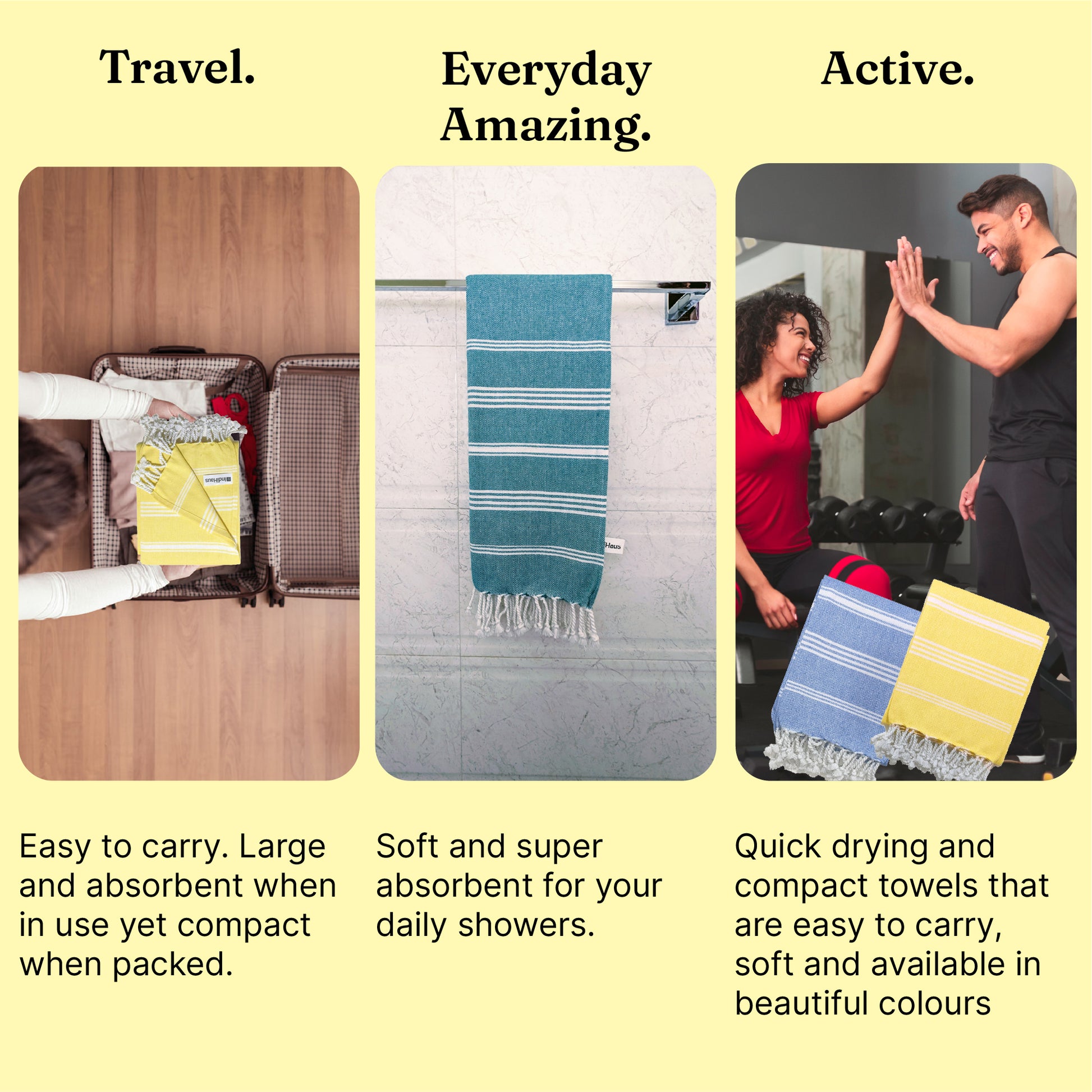 TRULY XL Bath & Hand Towel Set, IndiHaus Blue & Sunshine Yellow (Pack of 4+2)